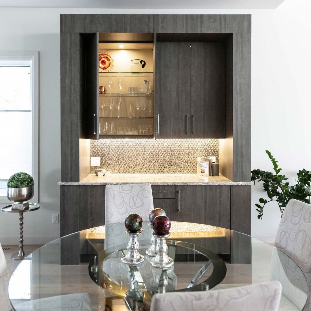 Having your own designated wet bar cabinets stocked with all of your favorite drinks at home is the ideal way to host a party. ARTEFACT can customize everything to create a perfect wet bar with ample smart storage solutions and plenty of styles and finishes to meet your needs. Whether you choose for internal lighting, a wine rack, or even add an integrated wine cooler, we design and build the bar cabinets to complement your style. Get inspired by browsing some of our bar cabinets and book a free consultation with one of ARTEFACT's design professionals to get you one step closer to your ideal entertainment space!