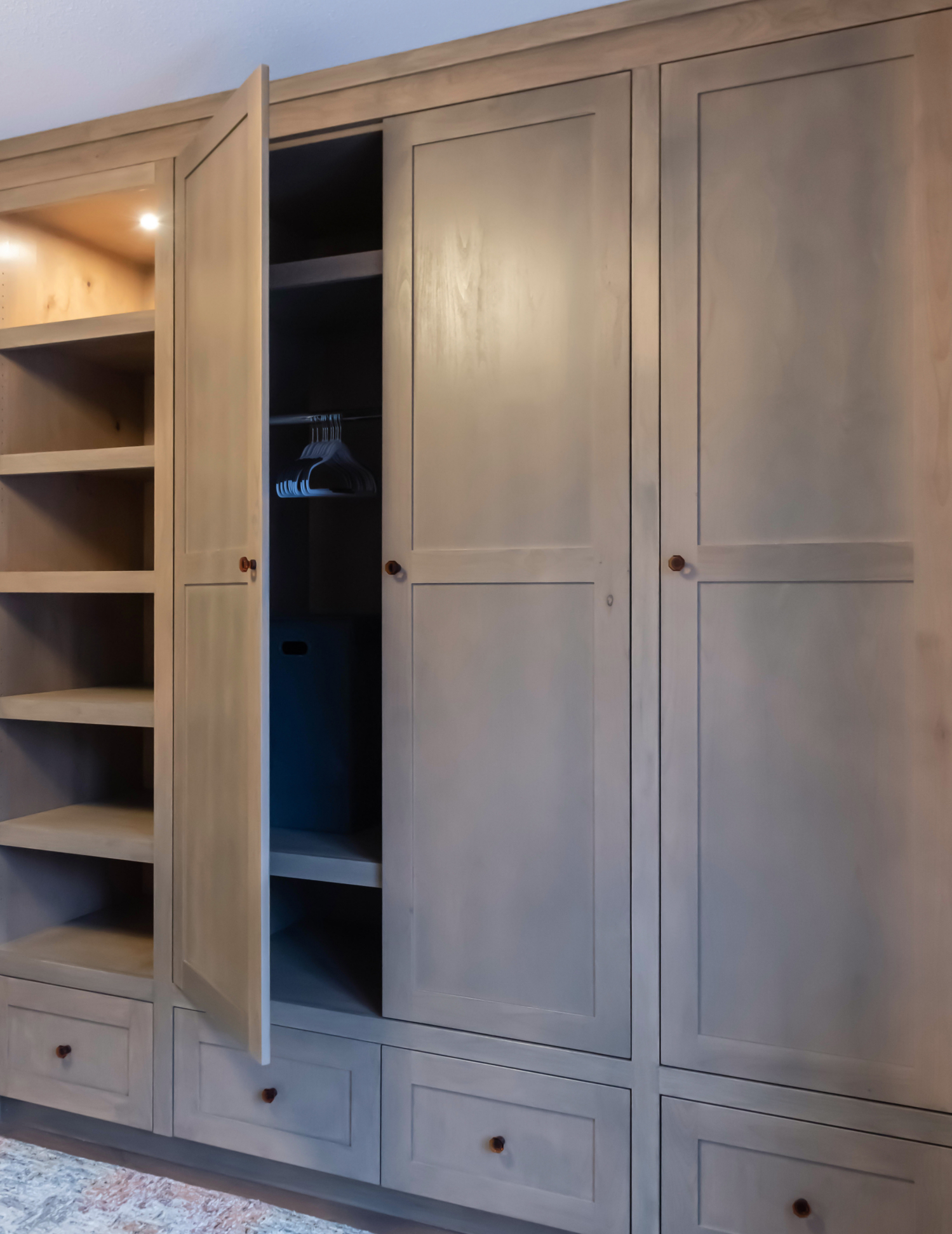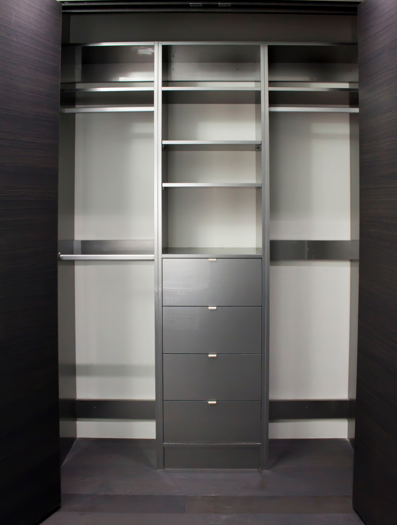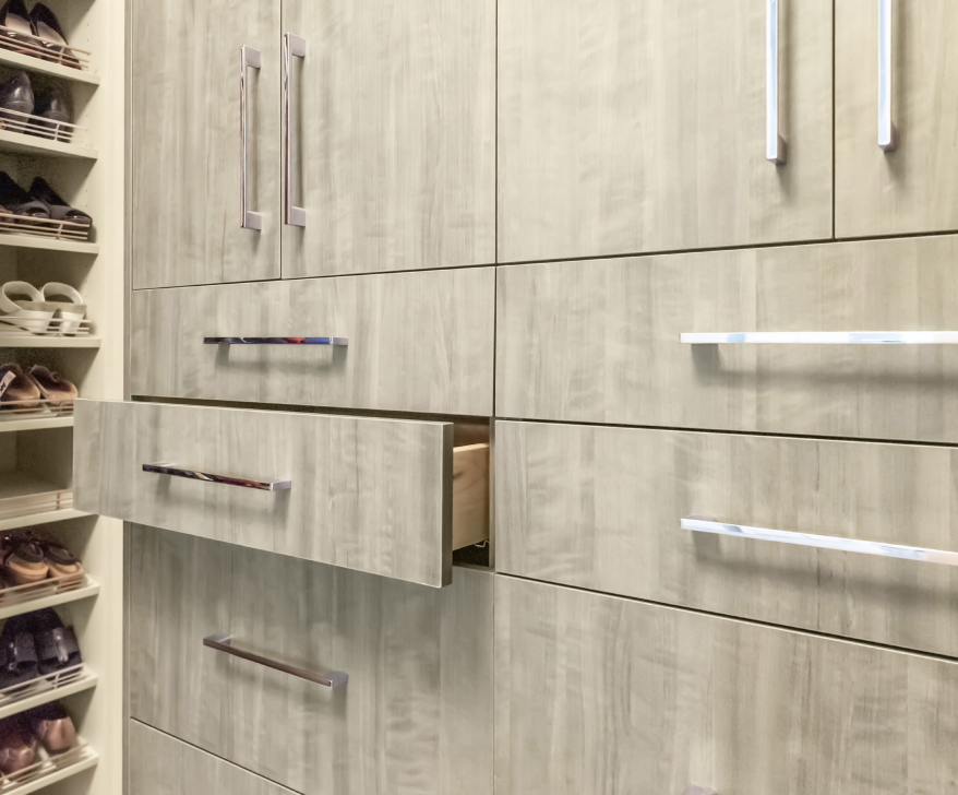 No matter how hard we try to keep our closets under control, it seems to have a way of becoming cluttered and disorganized in no time. From hanging space, drawers, cubbies, and shelves, our custom closets can provide practical storage solutions for your space and budget. We manufacture our closet unit systems to perfection in a seamless process that is built to last for many years to come. Explore and be inspired by some of our custom closet designs.